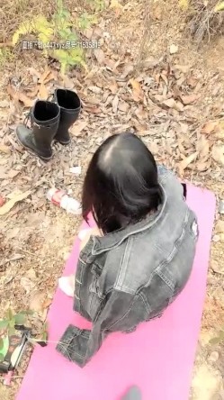高颜值黑衣妹子【骚劲小妖精】户外小树林大秀,垫子上全裸口交非常诱人,